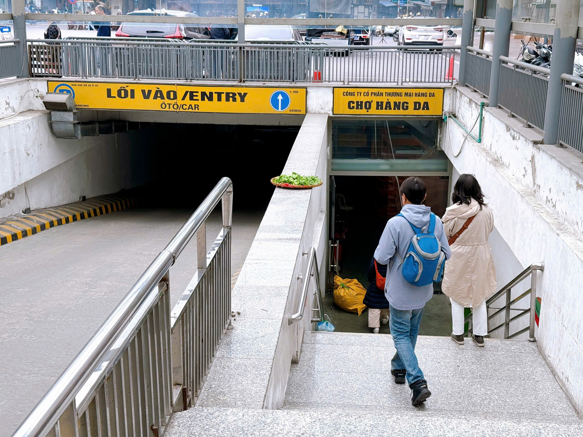 Nằm dưới tầng hầm tòa nhà, chợ Hàng Da (quận Hoàn Kiếm, Hà Nội) được người dân và du khách gọi vui là chợ “dưới lòng đất”.